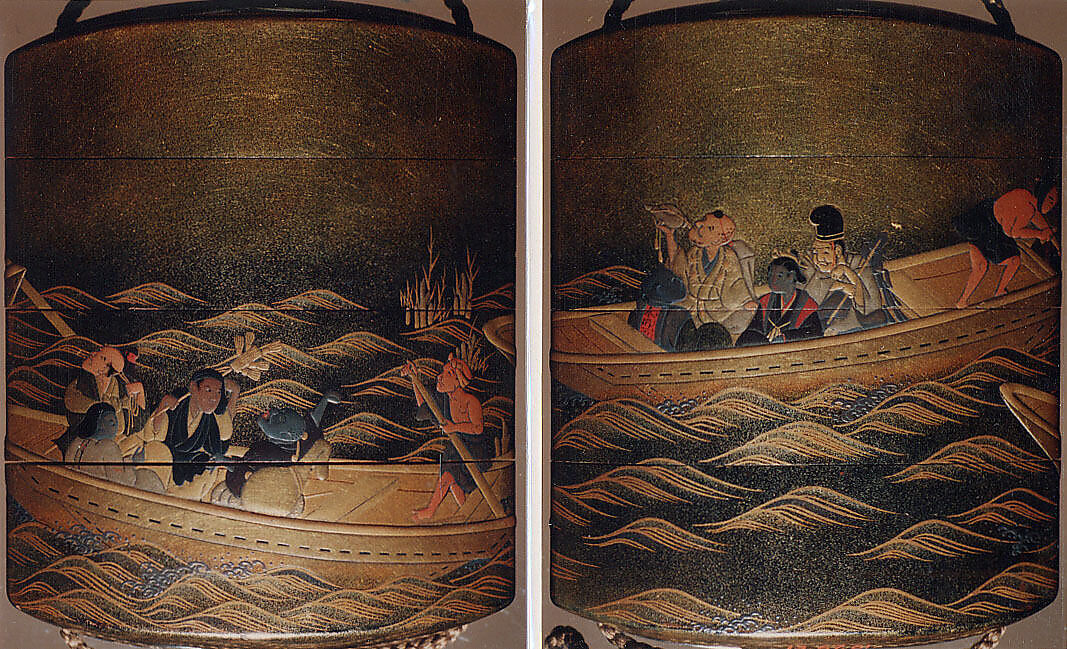 - Title: Case (Inrō) with Design of People Riding in Ferryboats