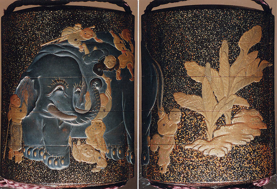 - Title: Case (Inrō) with Design of Blind Men Climbing all over Elephant Beside Banana Plants
