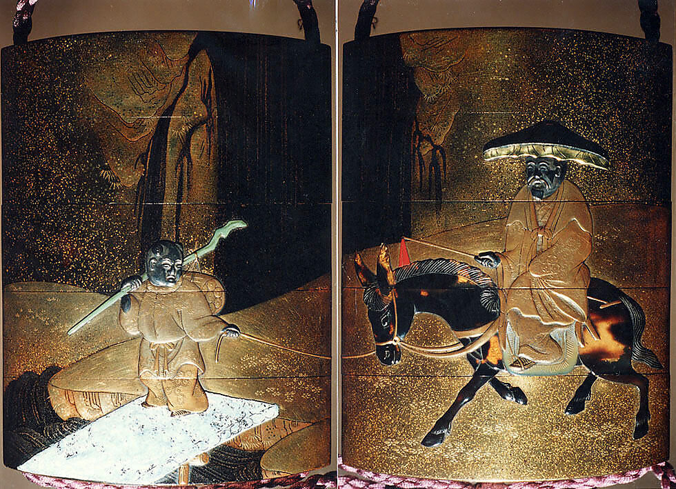 - Title: Case (Inrō) with Design of Chinese Horseman Seated on Mule (obverse); Karako on Bridge before Waterfall (reverse)