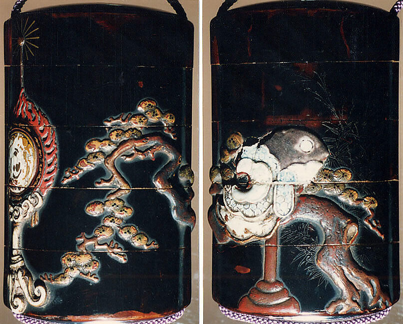 - Title:Case (Inrō) with Design of Bugaku Dance Hat on Stand beside Pine Tree (obverse); Dance Drum (reverse)