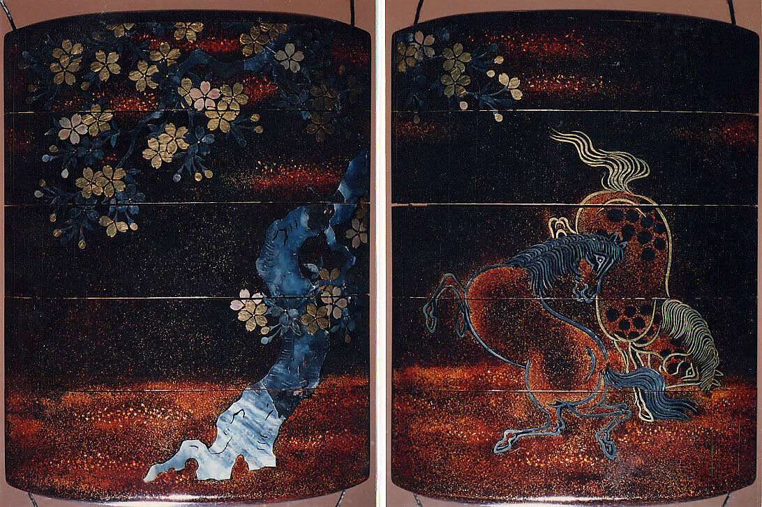 - Title: Case (Inrō) with Design of Two Horses Beneath Flowering Cherry Tree