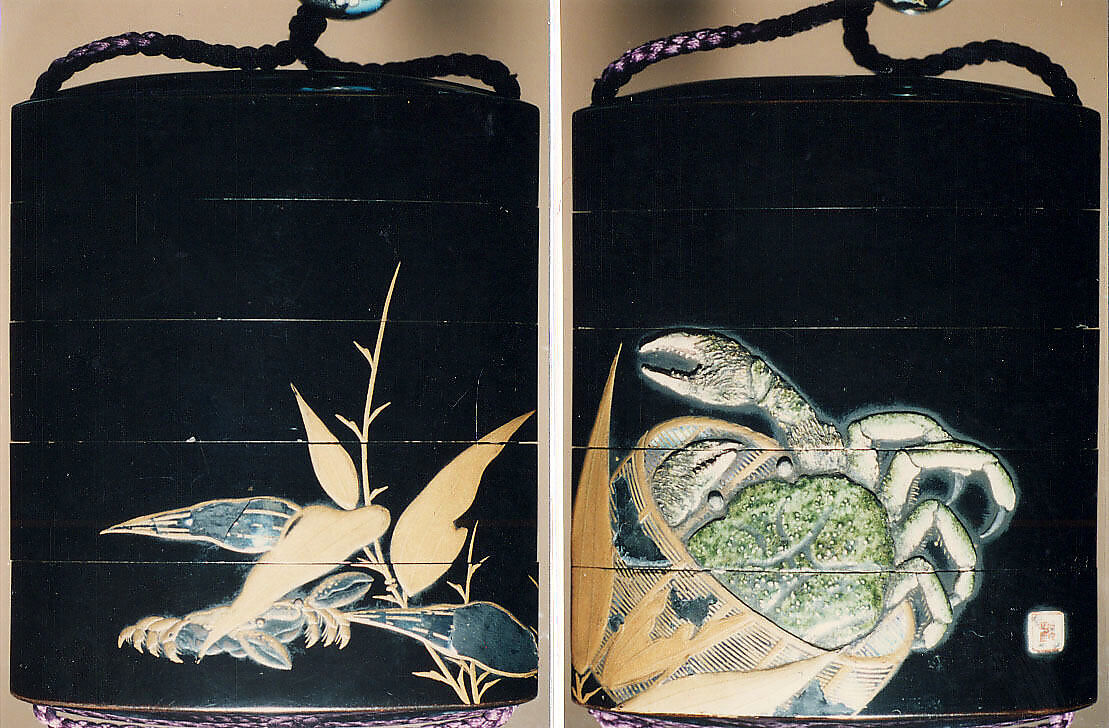 - Title: Case (Inrō) with Design of Crab in Basket (obverse); Crab in Bamboo Leaves (reverse)