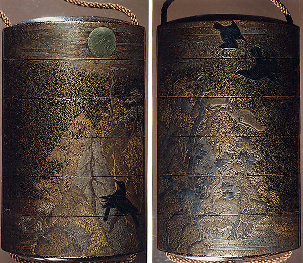 - Title:Case (Inrō) with Design of Crows in Trees and Flying before the Full Moon