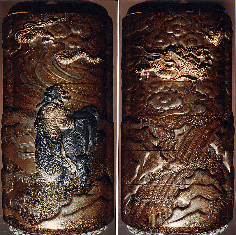 - Title:Case (Inrō) with Design of Chinese Sage beside and Ox (obverse); Dragon in Clouds over a Waterfall (reverse)