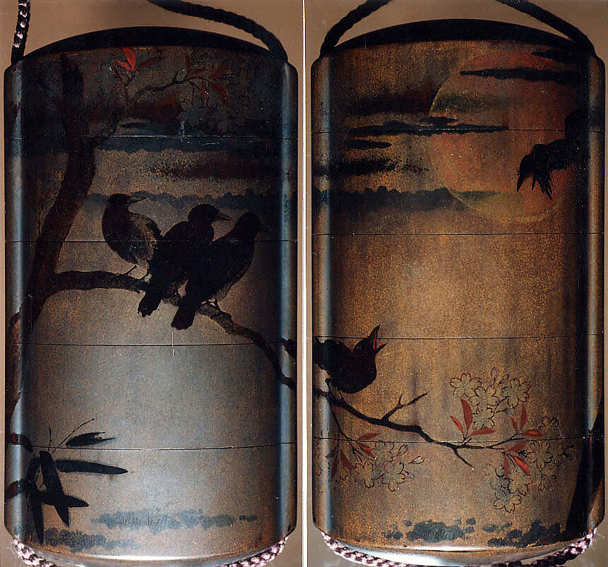 - Title: Inrō with Crows on Cherry Tree in Moonlight