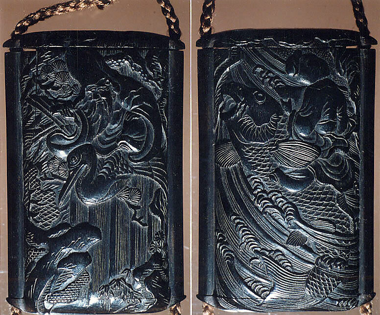 - Title: Case (Inrō) with Design of Fukurokuju (God of Longevity) Riding a Flying Crane before Waterfall (obverse); Kinko Sennin Riding a Carp on Waves (reverse)
