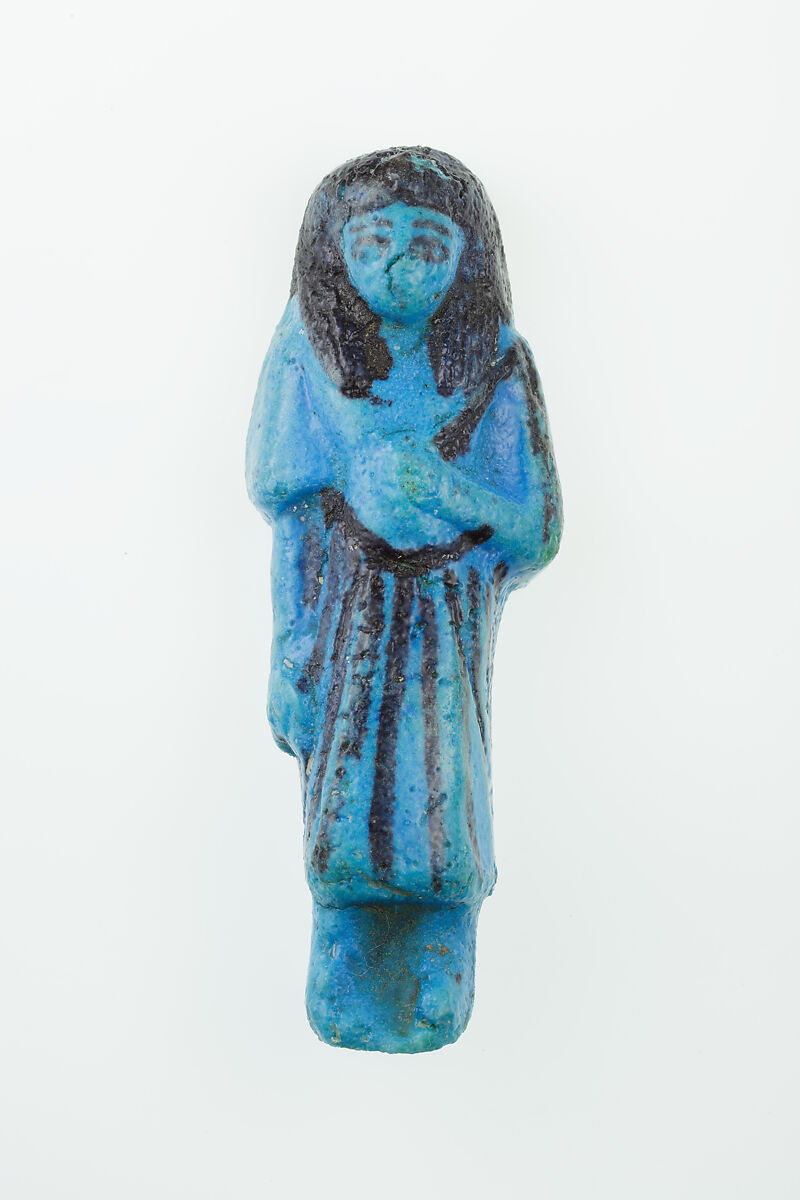 Almost 400 small funerary figures known as shabtis were found with Nauny’s burial. These can be seen as avatars, meant to carry out agricultural labor on Nauny’s behalf in the afterlife. Of the 393 shabtis discovered, 355 were workers and 37 were overseers like this one. Recognizable by their long kilts and the flails that they hold, the overseer figures were meant to supervise the worker shabtis (see for example <a href="https://www.metmuseum.org/art/collection/search/625679">30.3.26.10</a>) that worked on Nauny’s behalf in the afterlife. On the back pillar, Nauny is named as as a king’s daughter and called an “illuminated Osiris,” transformed through the process of mummification and identified with the principal god of the dead, then reanimated by the light of the sun god as he traveled through the Netherworld each night. Nauny’s shabtis were divided between seven boxes. Five of these, with their shabtis, were given to The Met, while two were sent to the Egyptian Museum in Cairo.