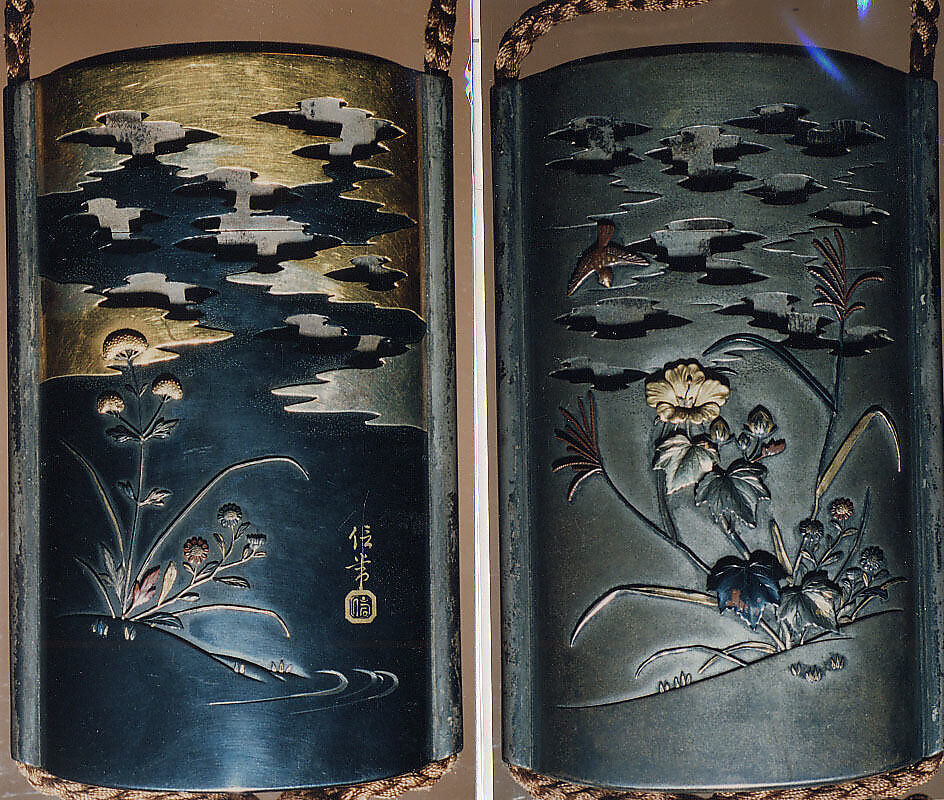 - Title:Case (Inrō) with Design of Hibiscus and Autumn Flowers beneath Clouds