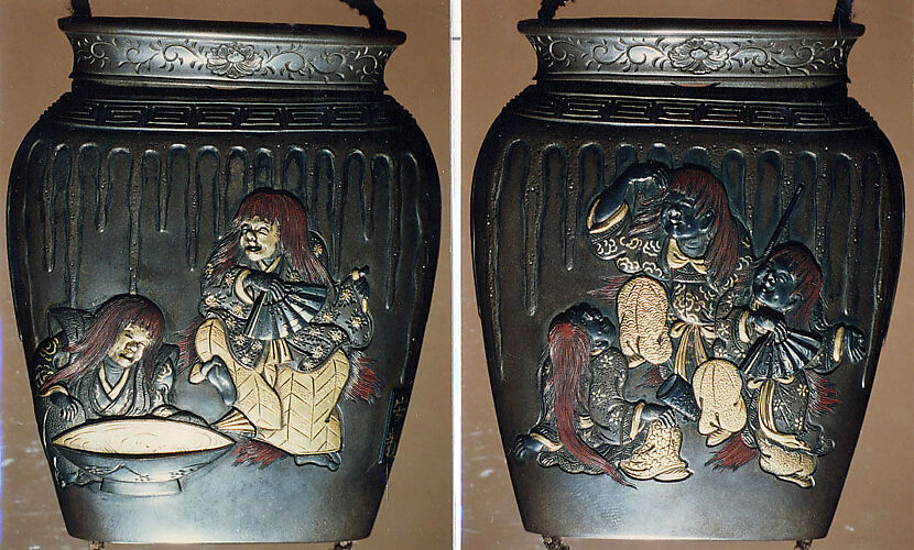 - Medium: Metal, silver metal, applied, gold, shibuichi, sentoku, various metals; Interior: silver metal