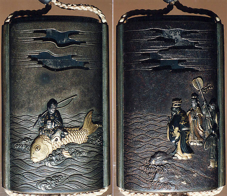 - Title: Case (Inrō) with Design of Urashima Tarō Riding a Fish among Waves (obverse); Dragon King and His Daughter on Shore (reverse)