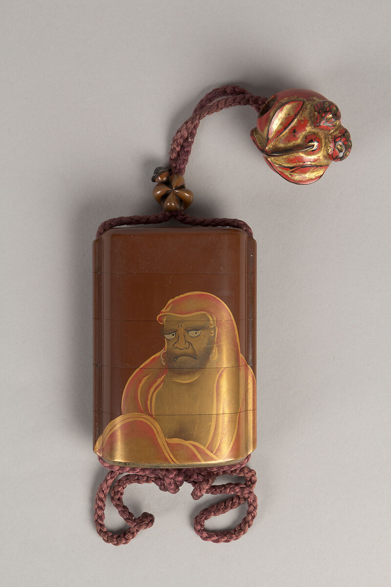 - Title: Case (Inrō) with Design of Daruma (obverse); Fly Whisk (Hossu) (reverse)