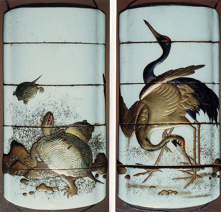 - Title: Case (Inrō) with Design of Standing Cranes (obverse); Tortoises beside Stones (reverse)