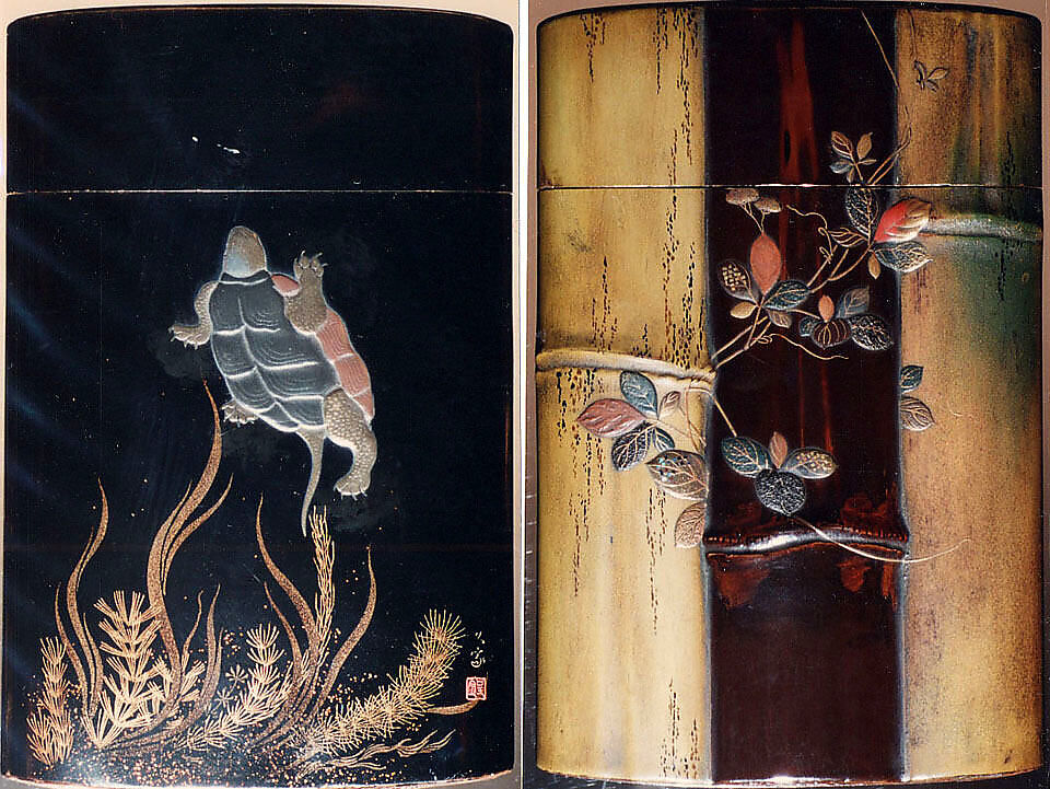 - Title: Case (Inrō) with Design of Tortoise Swimming above Water Weeds (obverse); Bamboo stems, Vines (reverse)