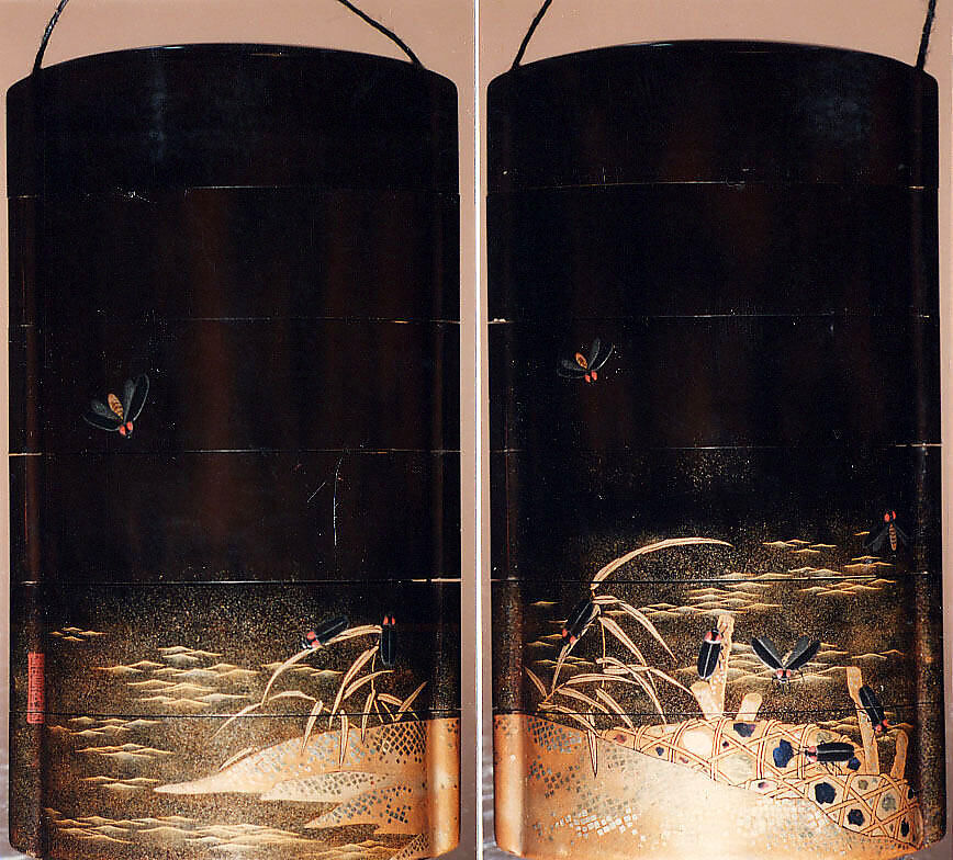 - Title: Case (Inrō) with Design of Fireflies in Flight and Climbing on Stone Baskets and Reeds at the Shore
