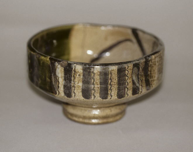 - Medium: Clay decorated with black lines, covered with a transparent crackled glaze and an overglaze (Mino ware, Oribe type)