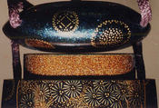 - Medium: Lacquer, aogai kirigane, roiro, nashiji, gold and coloured togidashi, kirigane; Interior: nashiji and fundame