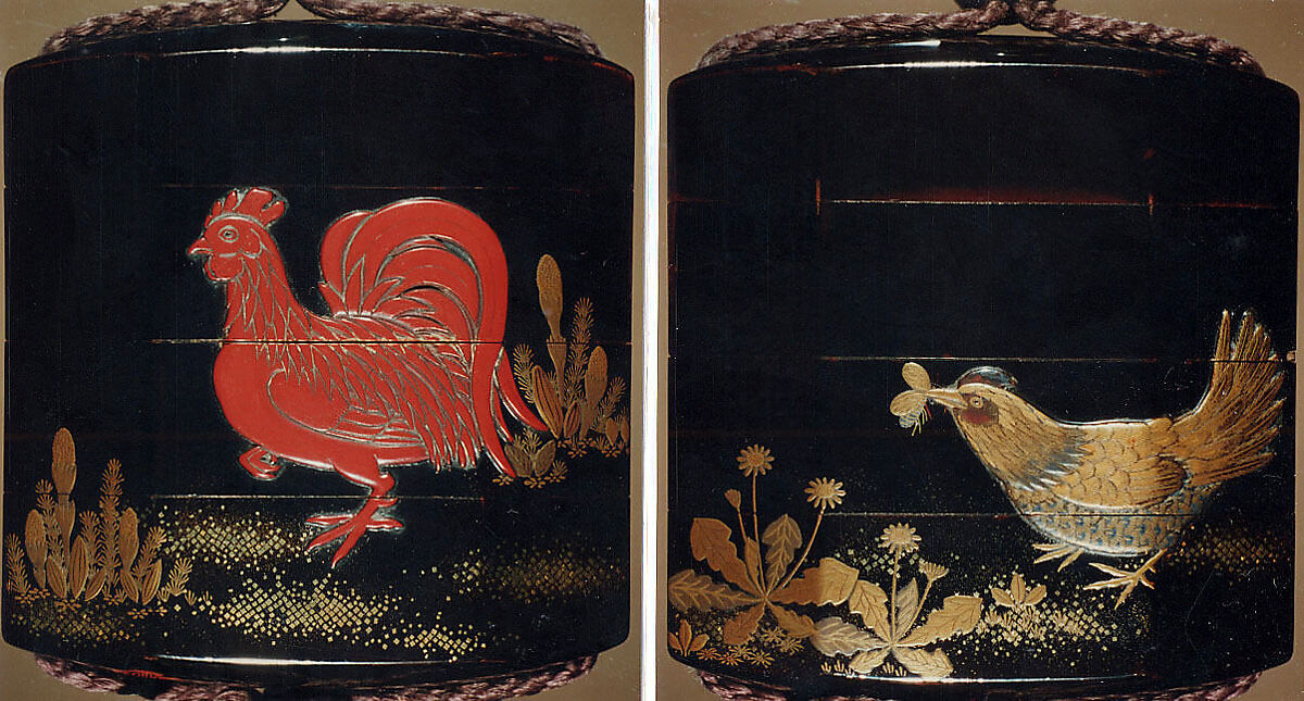 - Title: Case (Inrō) with Design of Chickens beside Spring Plants