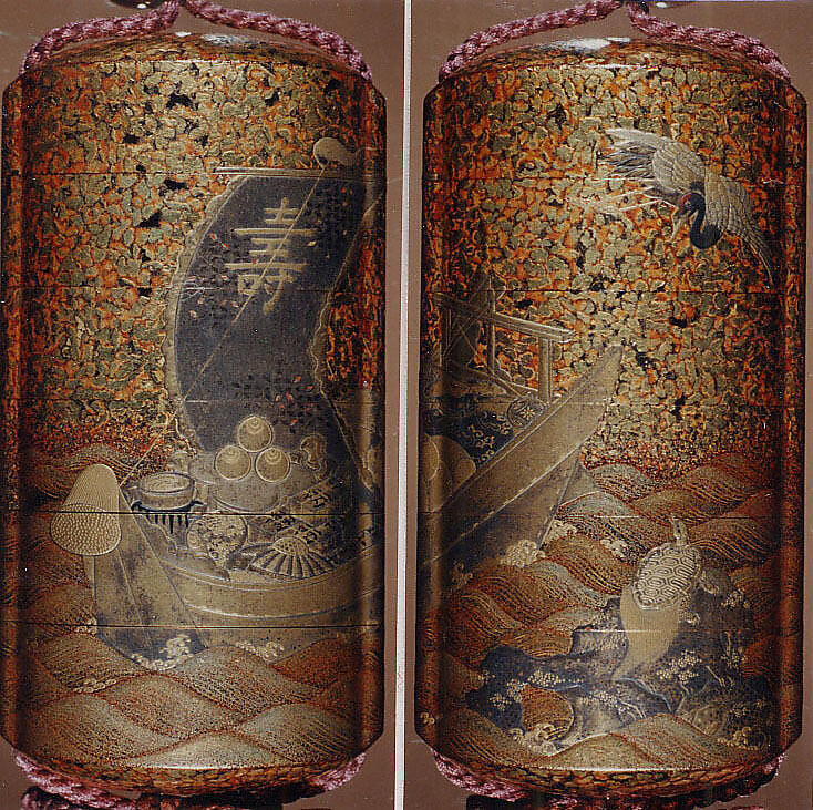 - Title: Case (Inrō) with Design of Treasure Boat on Waves (obverse); Crane in Flight and Tortoise on Rocks (reverse)