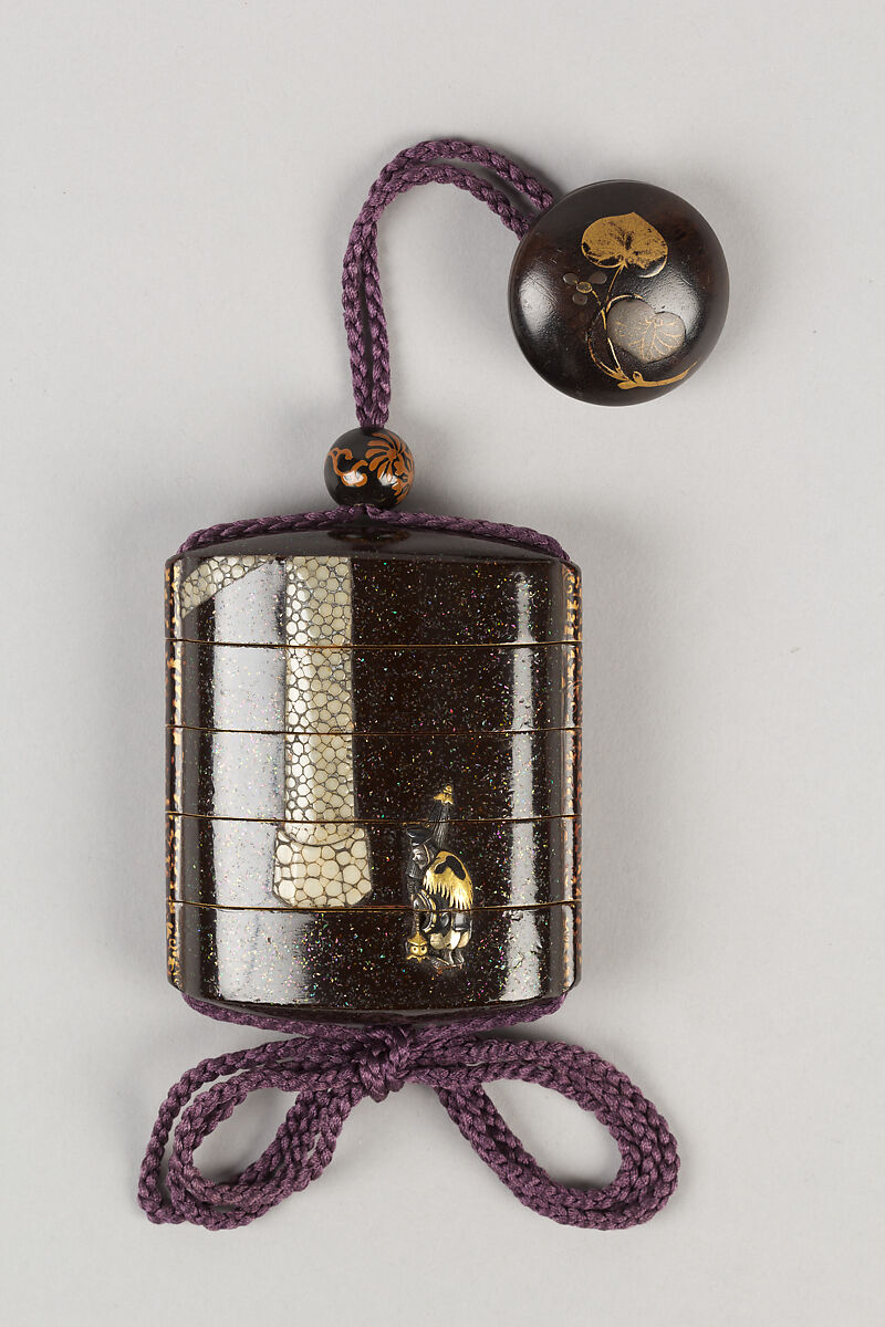 - Title: Case (Inrō) with Design of Person with Umbrella and Lantern Approaching Shrine Gate (Torii)