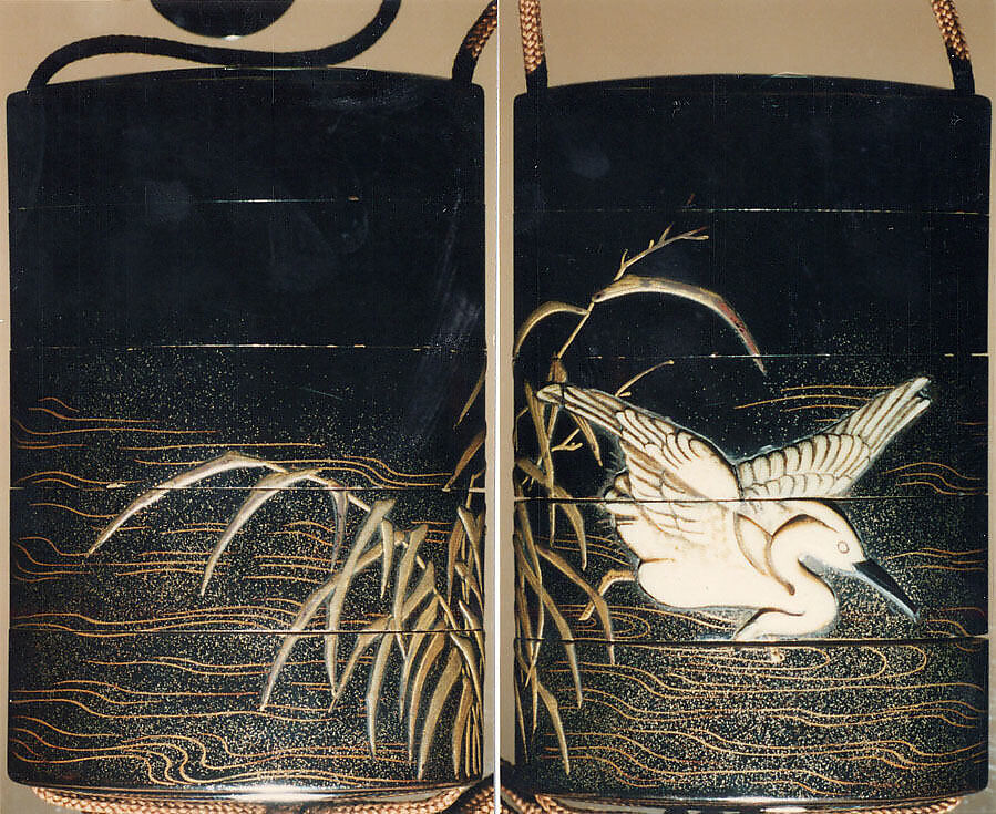 - Title: Case (Inrō) with Design of Heron Wading in Shallow Water beside Reeds