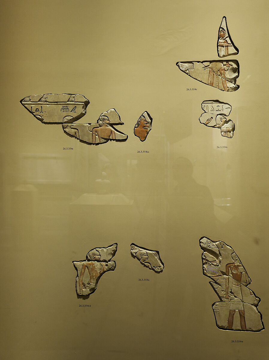 Khety was the first recorded royal treasurer (“overseer of what is sealed”) of Mentuhotep II (ca. 2051–2000 B.C.). Royal treasurers ranked directly under the pharaoh, on the same level with the vizier and the royal chief steward. His was situated high up in the cliffs at Deir el-Bahri, near the mortuary complex of his monarch. The relief fragments that are displayed here derive from the tomb’s entrance passage.