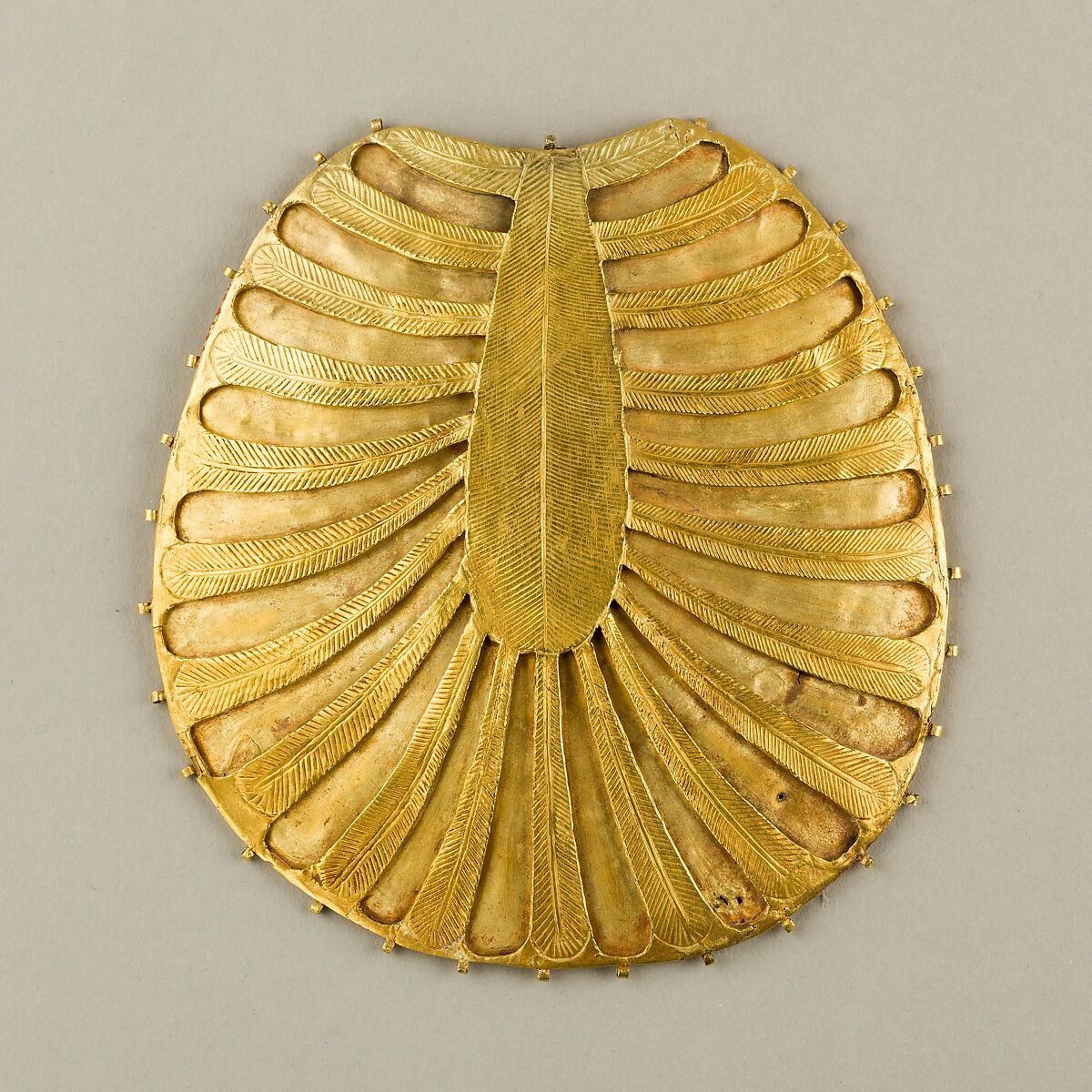 - Title:Disk Made of Two Sheets of Gold, One Concave the Other Decorated with Feathers or Palm Fronds