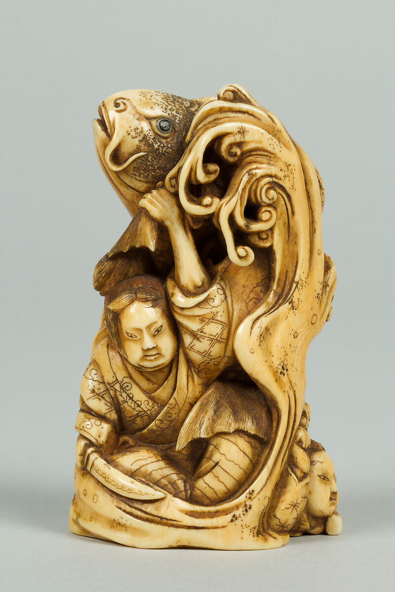 - Title: Netsuke of Group of men in the Water holding a Large Carp