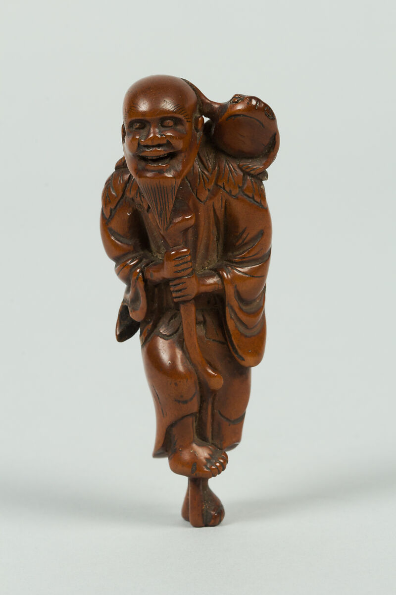 - Title: Netsuke of Old Man Leaning on a Stick; Frog on His Shoulder