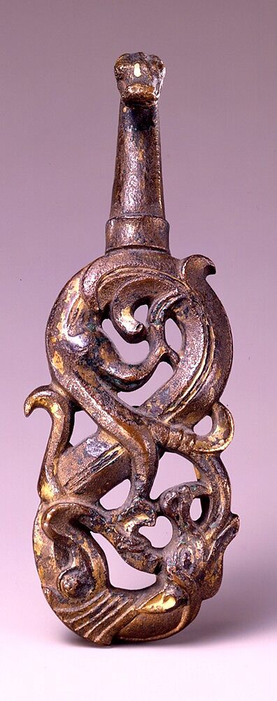 Belt hooks, possibly inspired by nomadic cultures of the steppes, were not merely a practical garment fastener but also an important means of asserting social standing. The exquisitely cast dragon and luxurious gilding of this accessory communicate the prominent status of the owner.