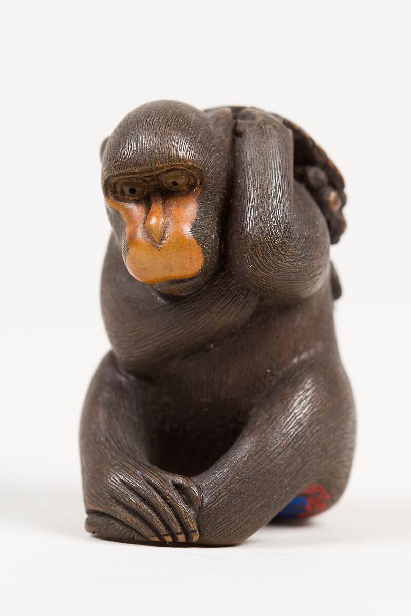 - Title: Netsuke of Seated Monkey Carrying a Bunch of Grapes and Leaves