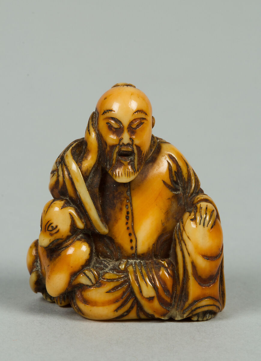 - Title: Netsuke of Seated Figure of Old Man with a Dog