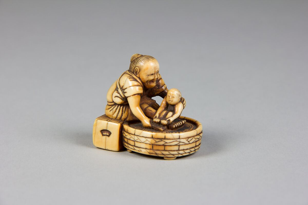 - Title: Netsuke of Old Woman Bathing Child in a Tub