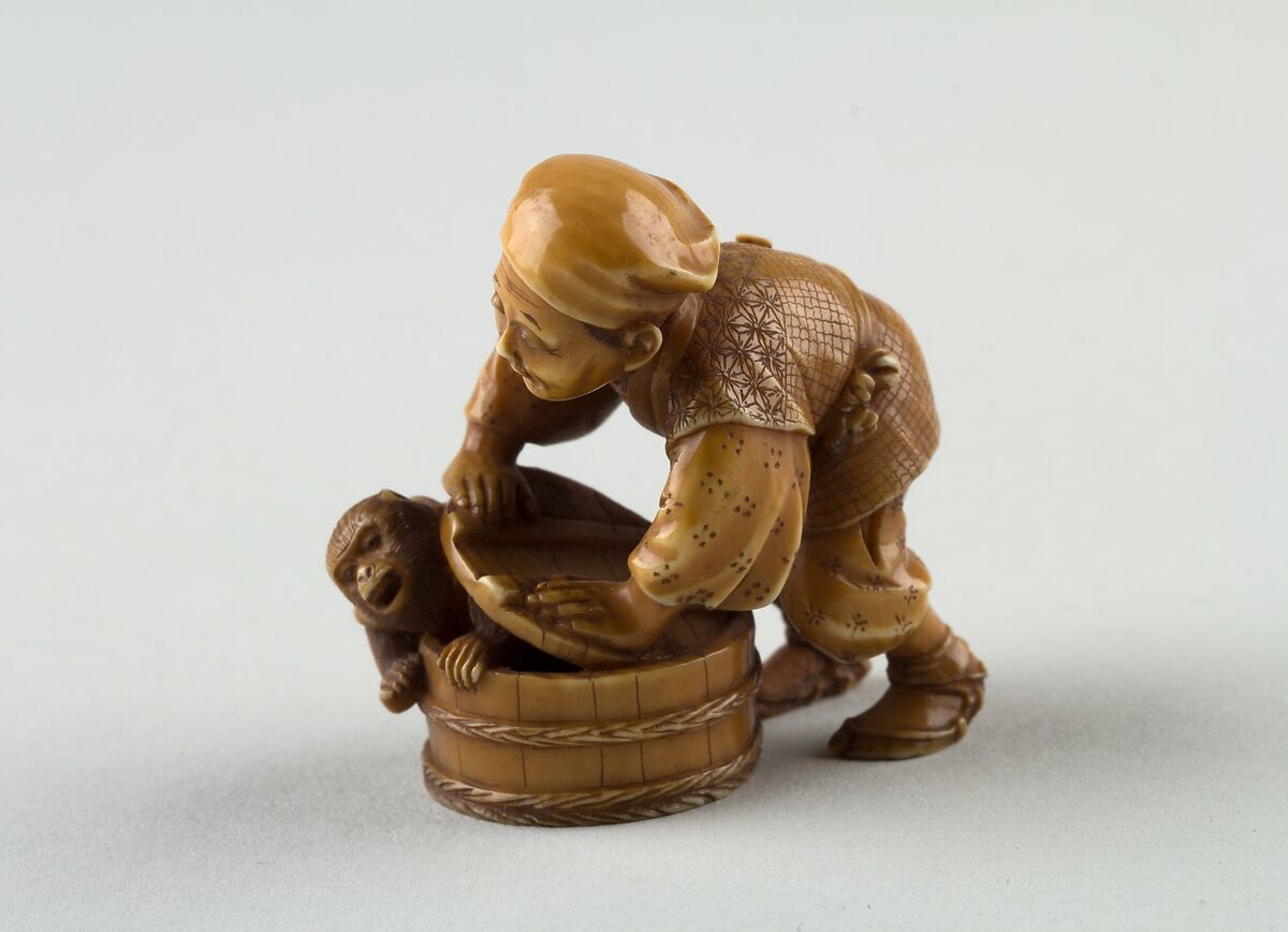 - Title: Netsuke of Man Forcing Monkey into a Basket