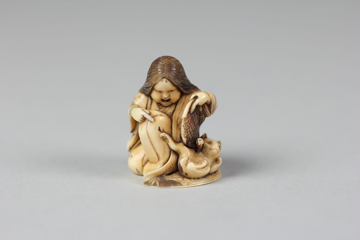 - Title: Netsuke of Girl Playing with a Cat