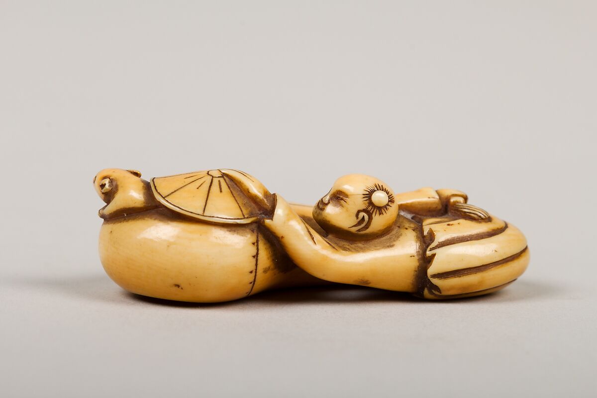 - Title: Netsuke of Boy Catching a Mouse in a Gourd