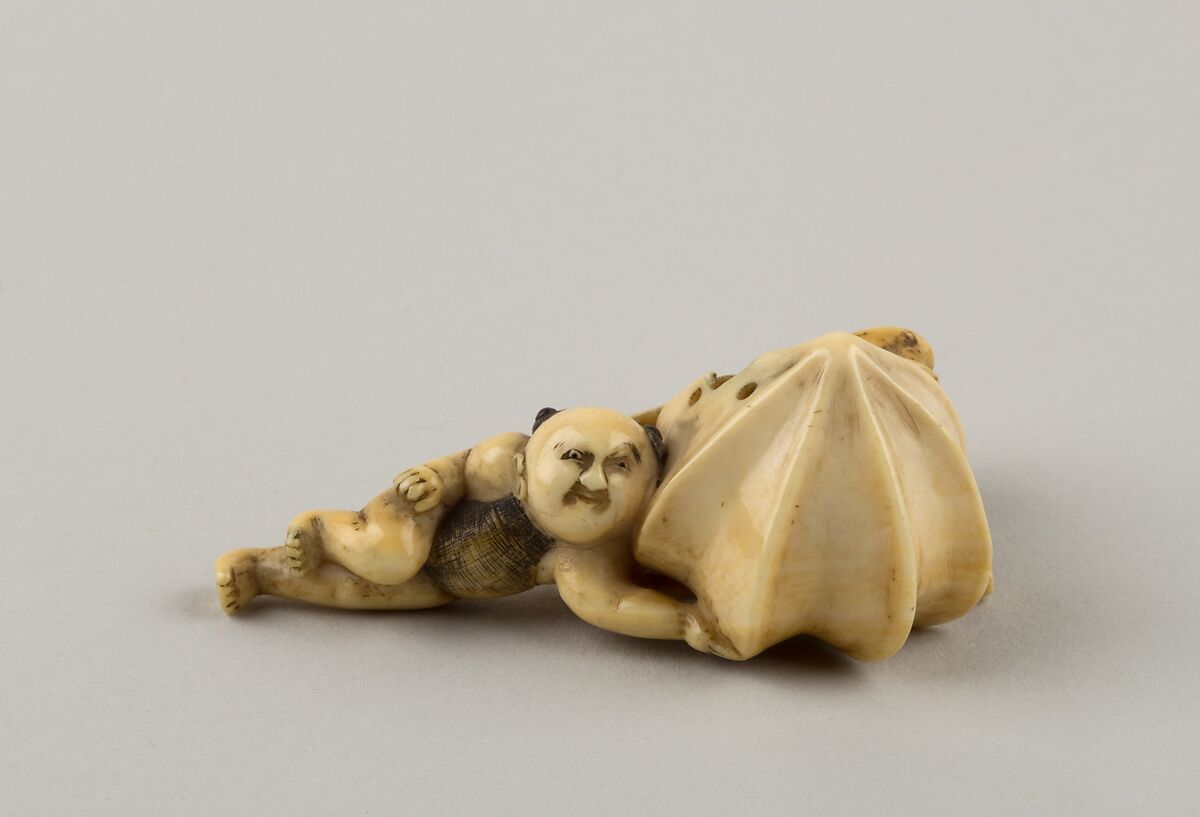 - Title: Netsuke of Boy Carrying a Branch of Fruit