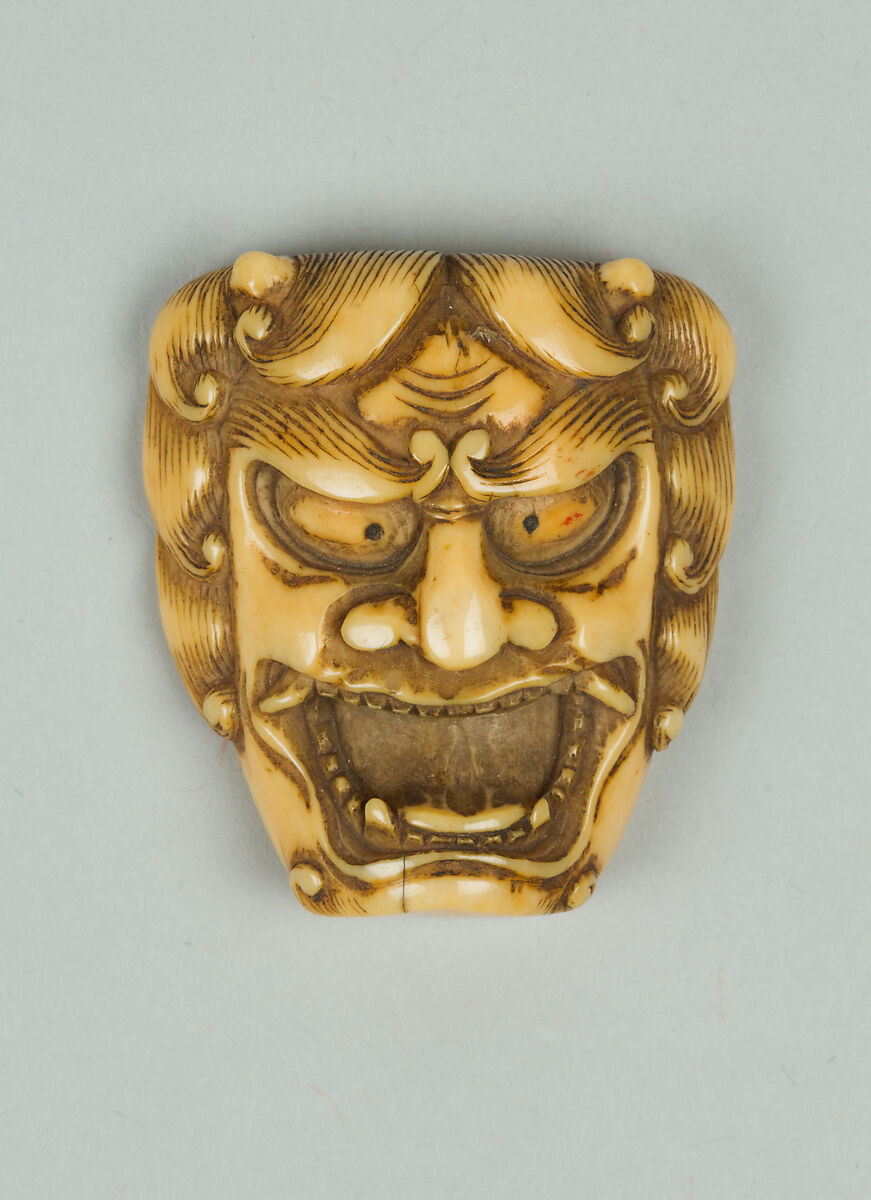- Title: Netsuke of Mask of a Man with Open Mouth and Curly Hair