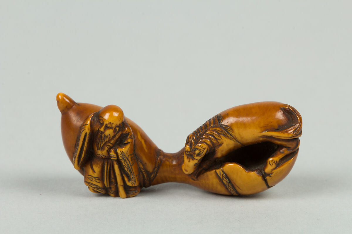- Title:Netsuke of Small Gourd with Horse and Man