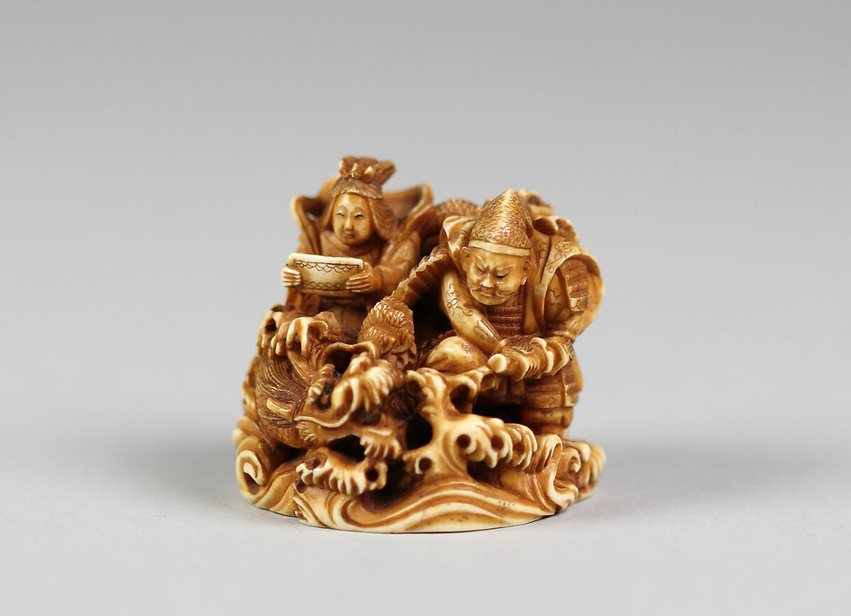 - Title: Netsuke of Two Seated Figures and a Dragon