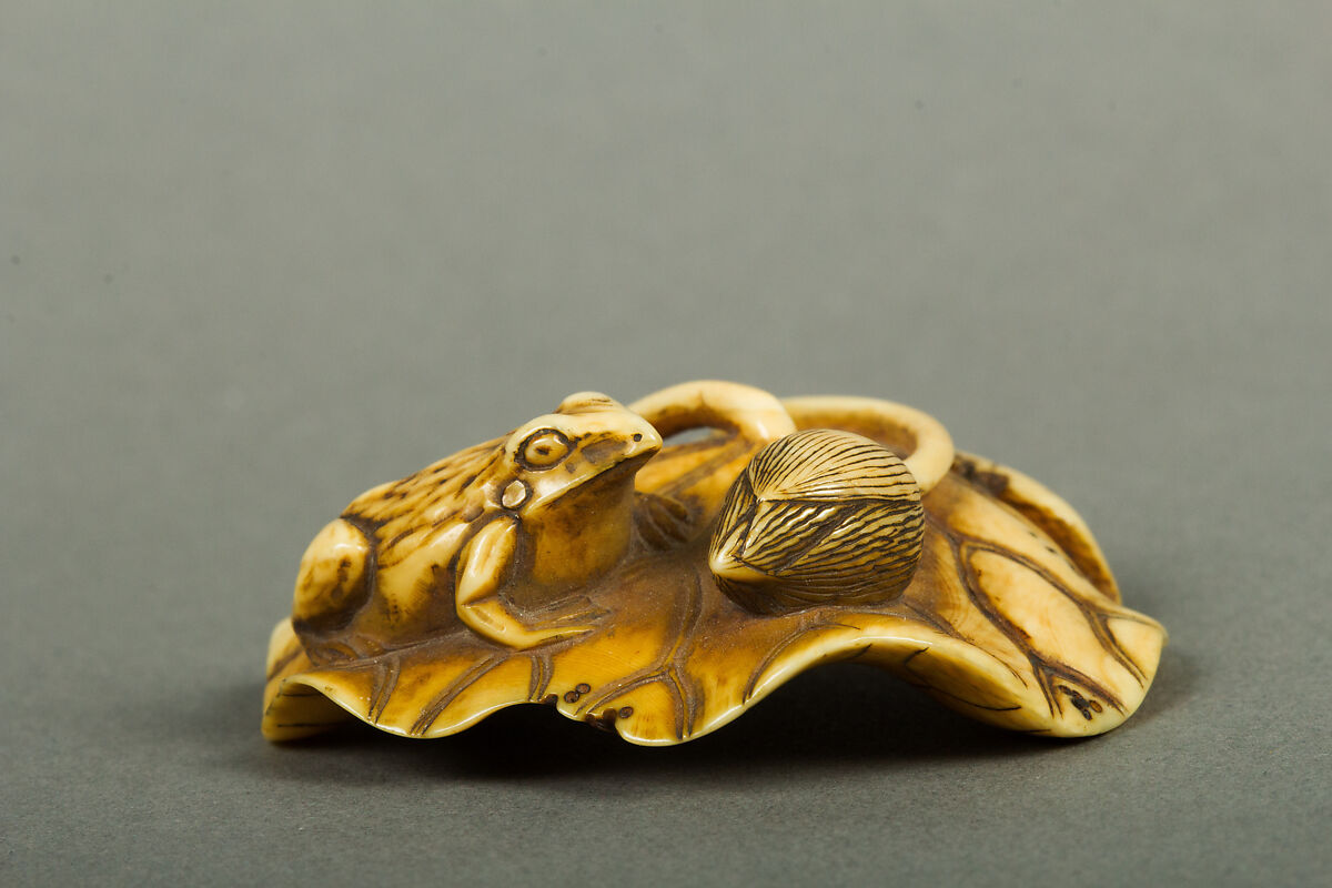 - Title:Netsuke of Frog on a Lotus Leaf