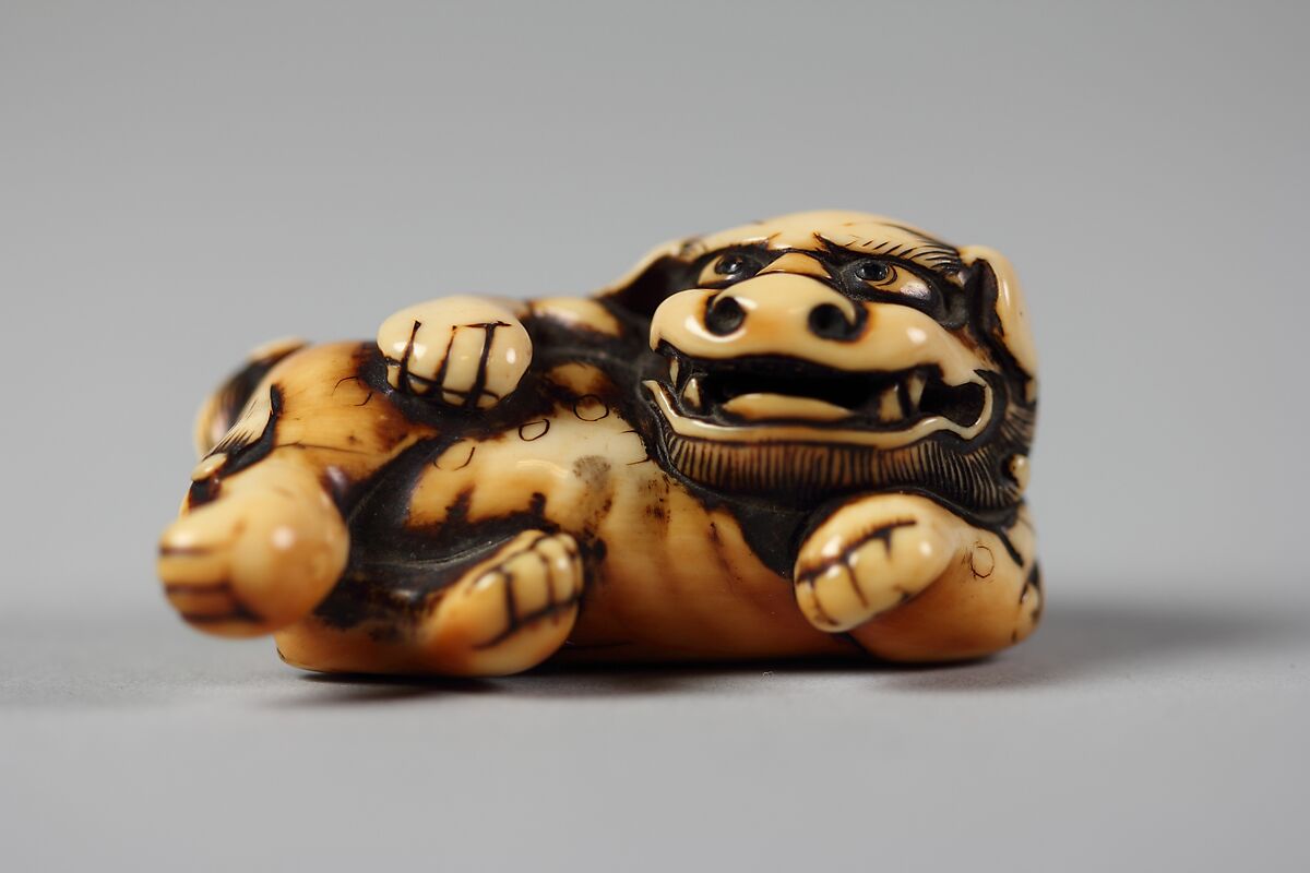 The exaggerated features of the humorous-looking shishi (guardian lion) contribute to this netsuke’s devilish charm and are indicative of its early date.