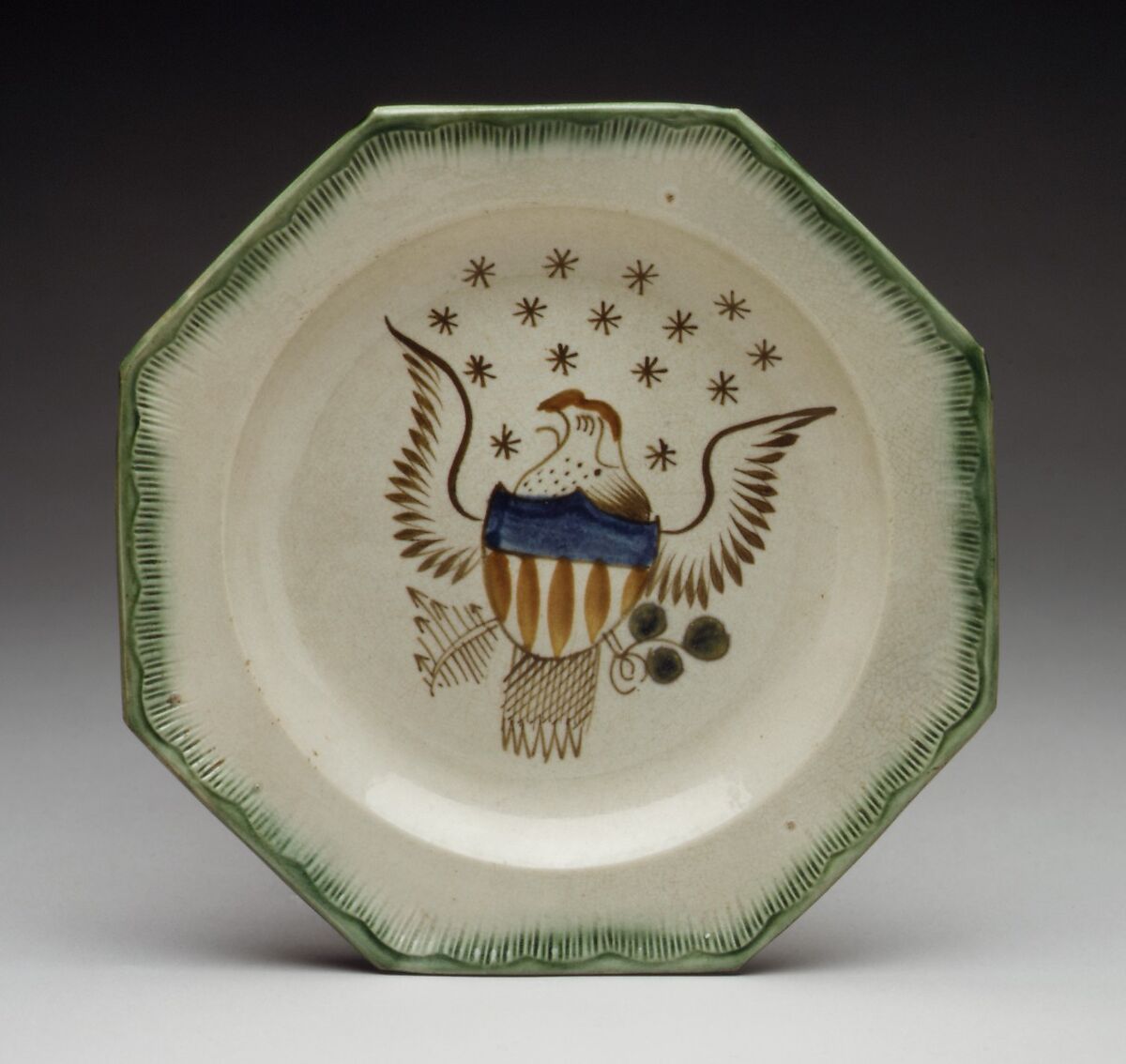 This octagonal plate features an American eagle with arrows in one claw and a laurel branch in the other.