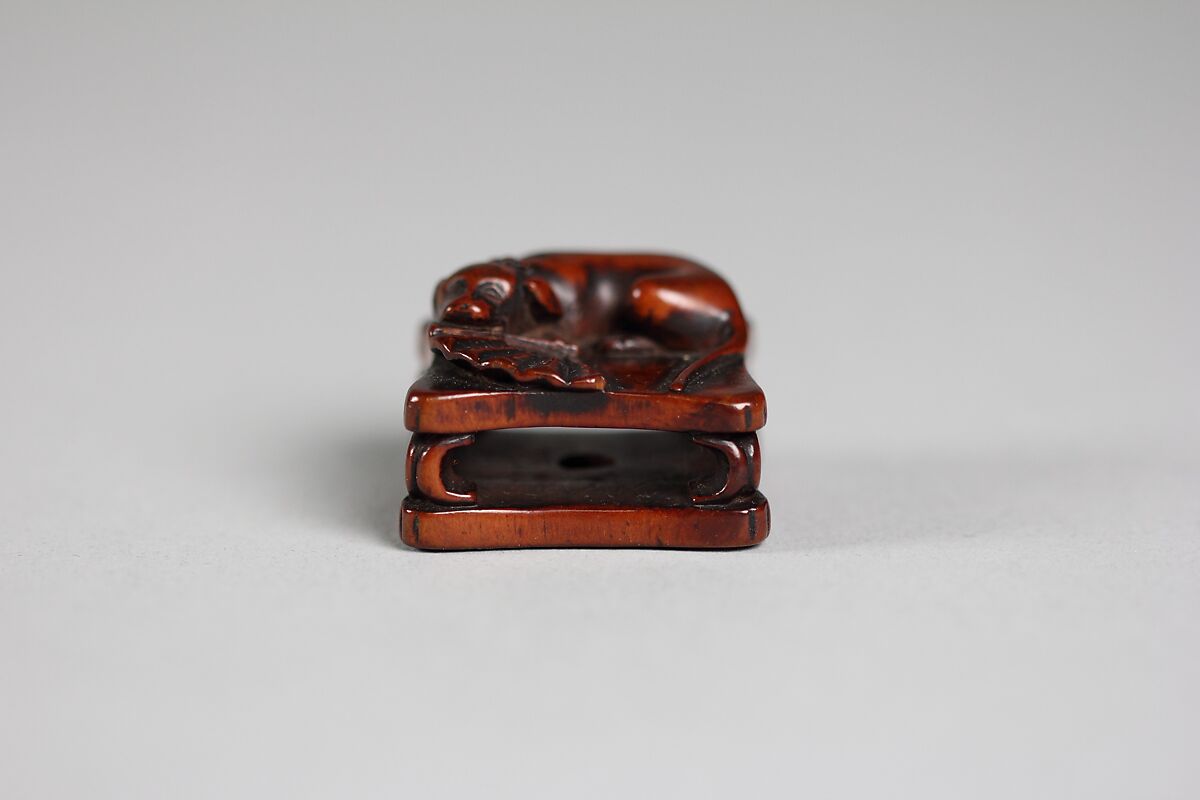 - Title: Netsuke of Dog and Fan on a Bench