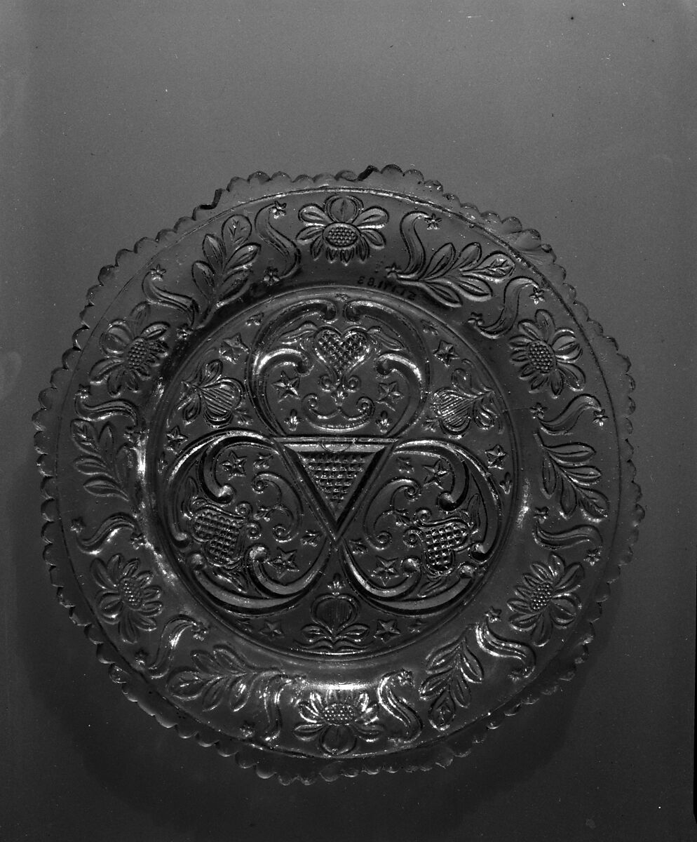 The design pressed into this plate is the same design as on a cup plate in the collection, 45.100.136.