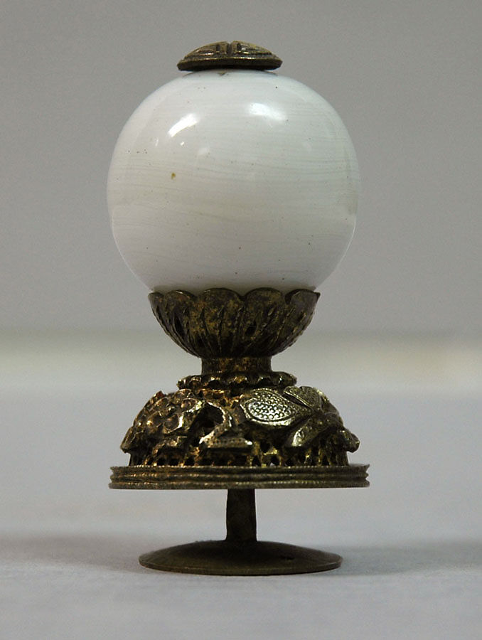 - Dimensions: H. with stand 2 3/8 in. (6 cm); W. with stand 1 3/8 in. (3.5 cm); Diam of spherical finial 1 1/8 in. (2.9 cm)