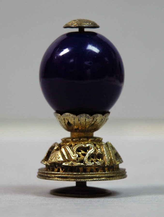 Hats were an important part of official dress at all levels of government, and the finial worn atop a hat was an indicator of the wearer's rank. The finials shown here (1973.132.1–.3)—red, blue, and white—correspond to three different ranks, from higher to lower.