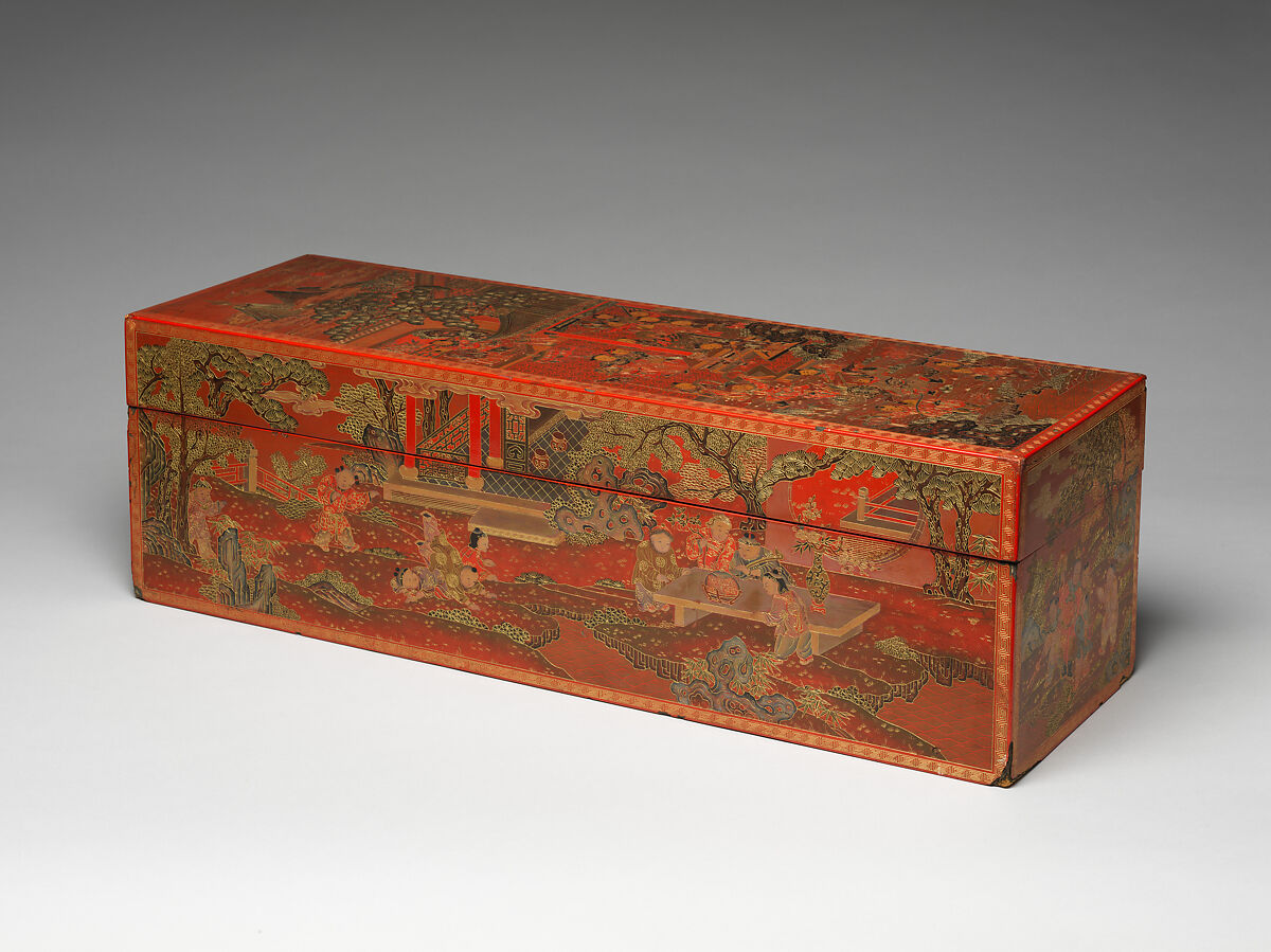 - Medium:Red lacquer with incised decoration inlaid with gold