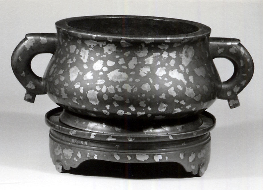 Although seemingly random, the gold splashes on the surface of this incense burner and its matching stand were carefully applied to give the otherwise flat surface a sense of movement and depth.