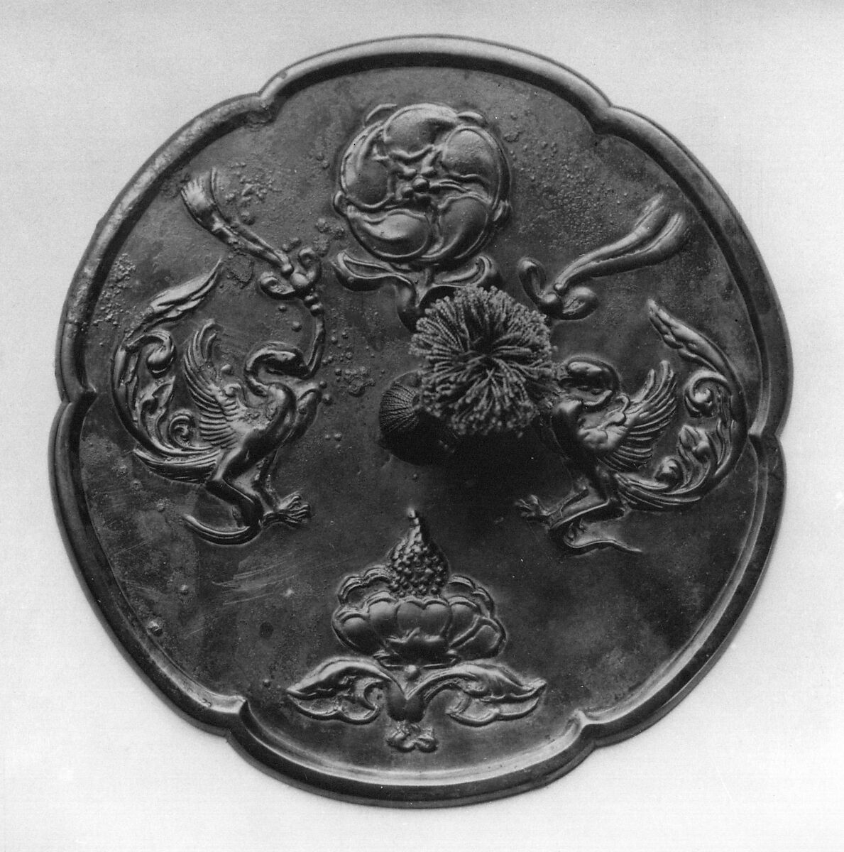 - Title: Mirror with paired fantastic birds and floral designs