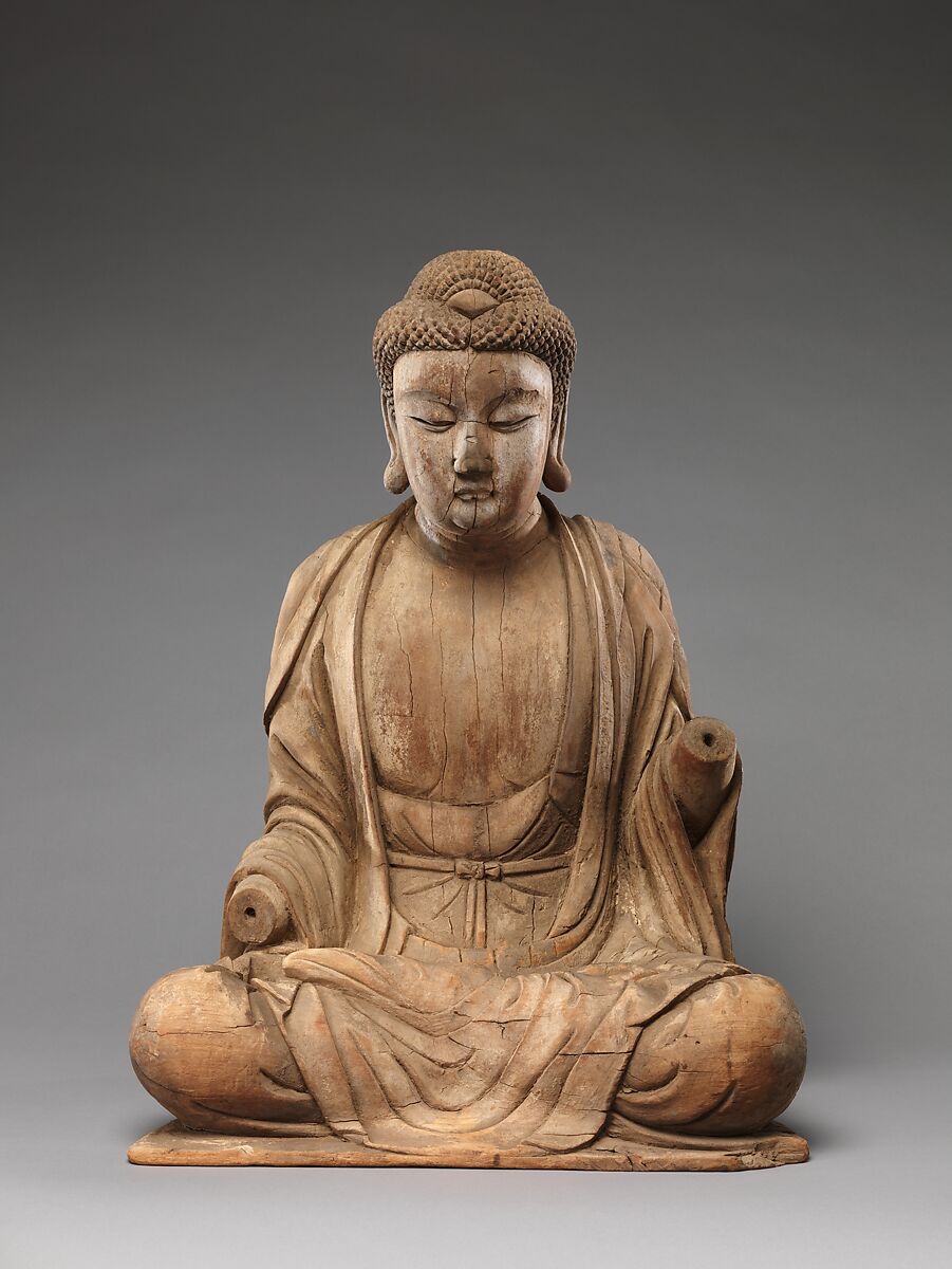 Scientific analysis reveals that this sculpture was carved in north China and has a radiocarbon date range of 1040–1260. The simple dress and solemn facial expression of the Buddha are typical of Buddhist sculpture of the Jin dynasty. This Buddha was likely once the main figure of a triad, attended by two bodhisattvas and/or luohans.